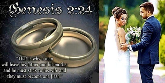 24 Therefore a man shall leave his father and mother and be[d] joined to his wife, and they shall become one flesh.